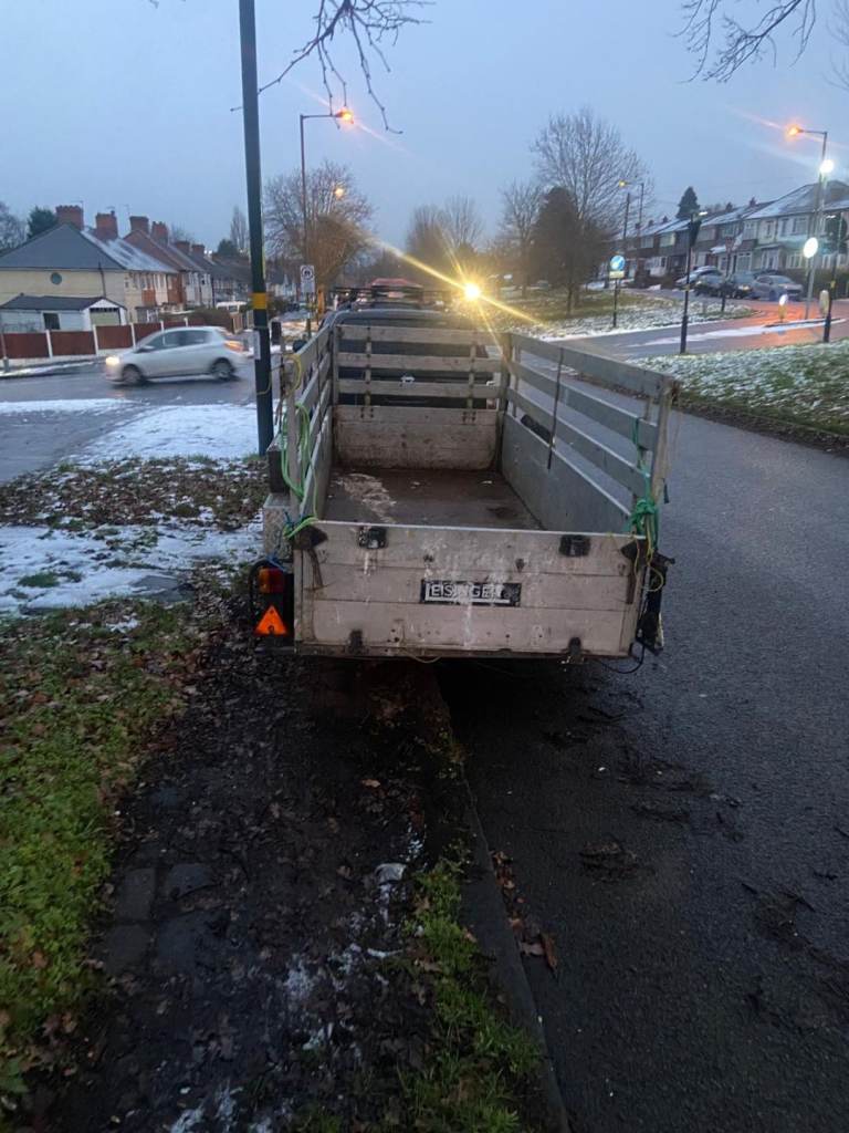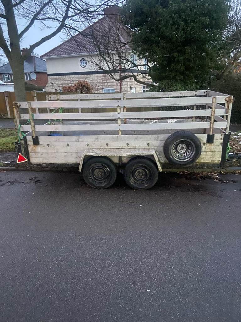 2T heavy duty trailer used to move builder materials. Back door and one back light have small damage. Handles perfectly, great trailer.