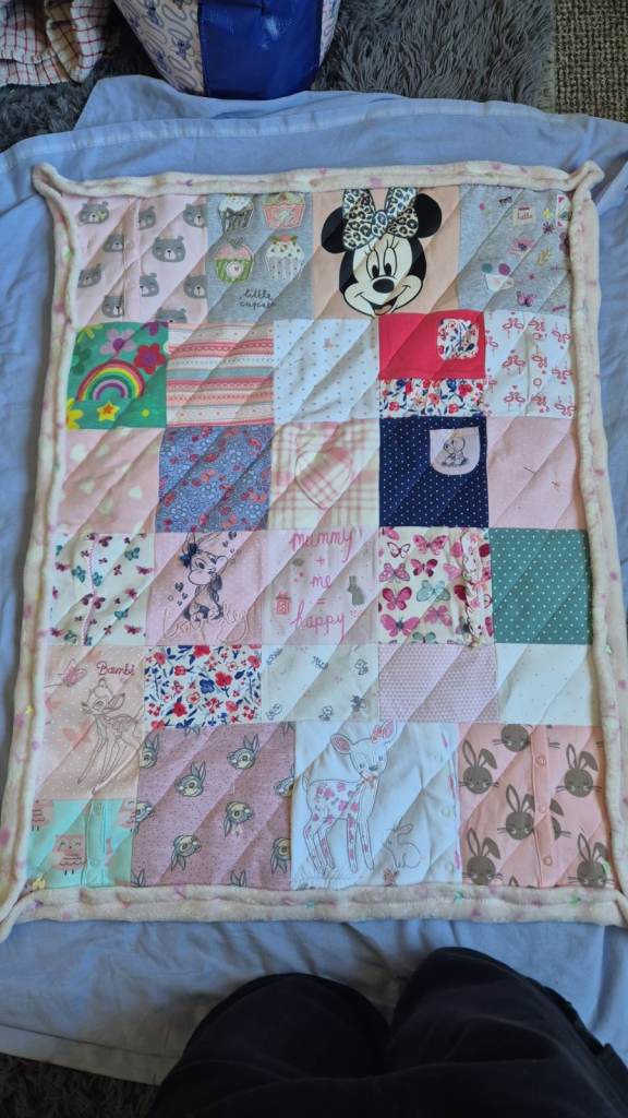 Why not get them made into a lovely memory blanket that you can have on show or to rap around you when you think of or miss them.