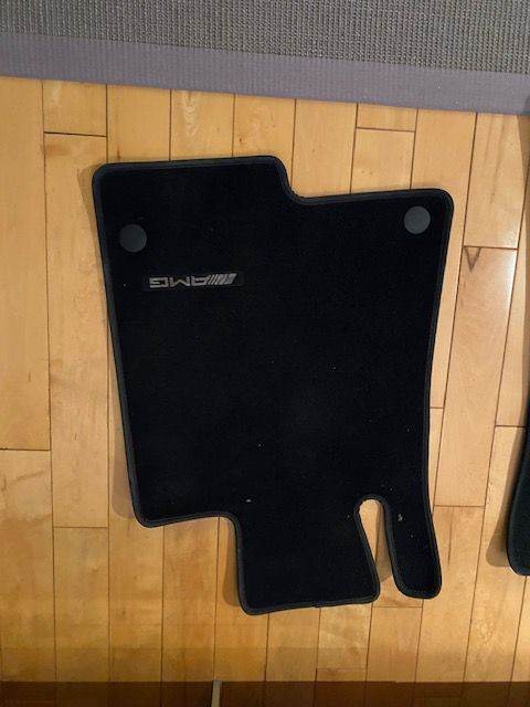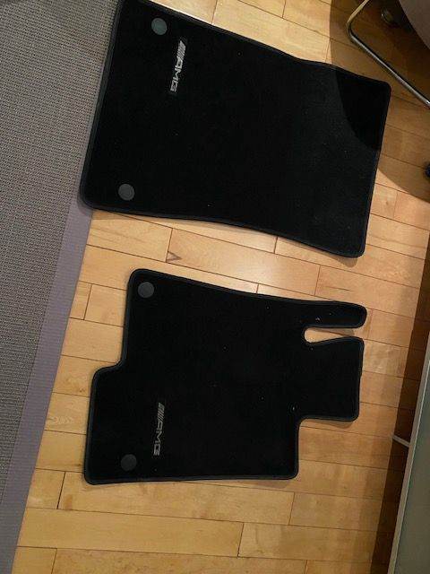 Genuine black Mercedes AMG embroidered mats for driver and passenger sides of most SLC and SLK models. Need a clean but otherwise perfect, stitching no flaws or plucks. The premium brand AMG of Mercedes under your feet. New ones well over £100.
