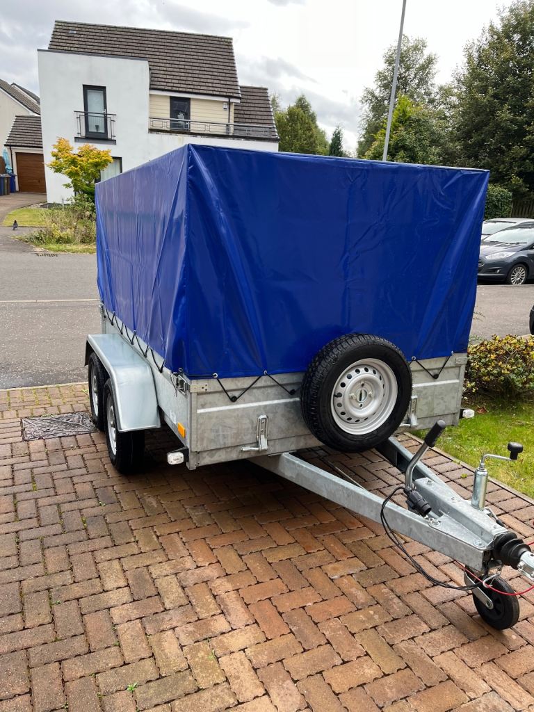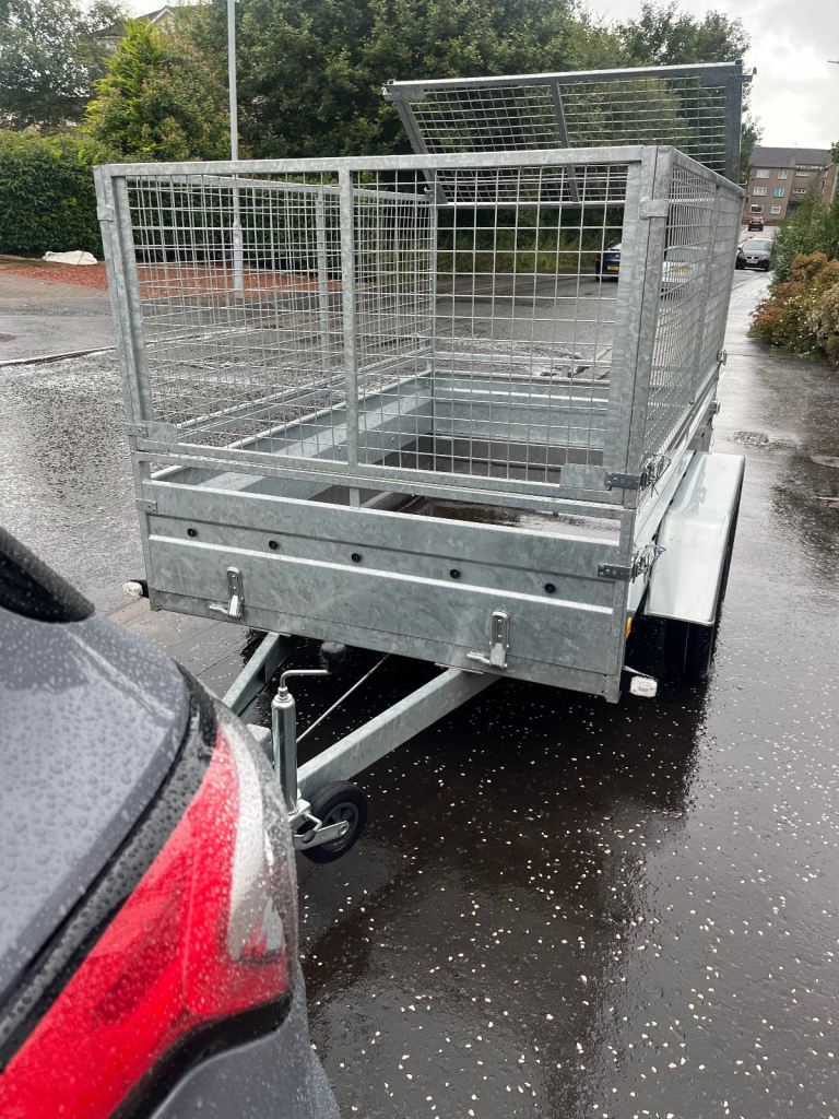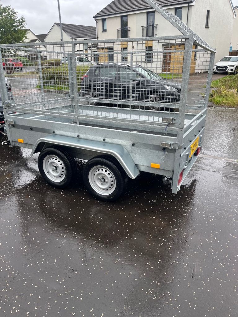 Excellent condition as new 8x5 mesh sides trailer double wheel base also baked 1300kg Brand-new Blue cover Spille and Hitch lock have all paperwork