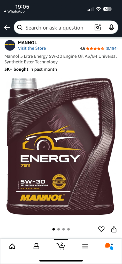 5L motor oil 5W 30 opened and only used a drop still nearly full selling due to no longer have car with this oil