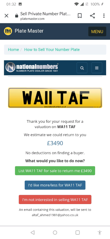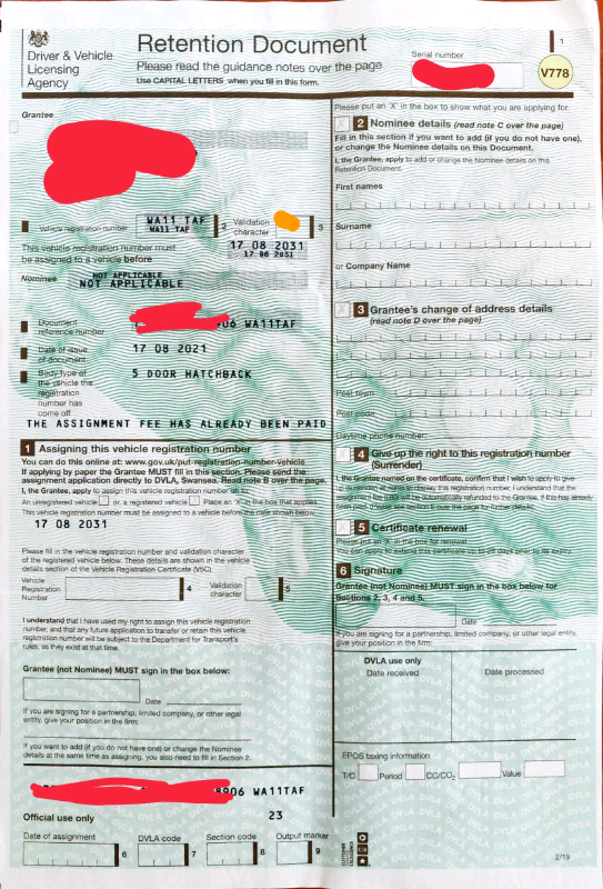 Private number plate WA11TAF (W. ALTAF) held on retention certificate (v778) expired 17.08.2031