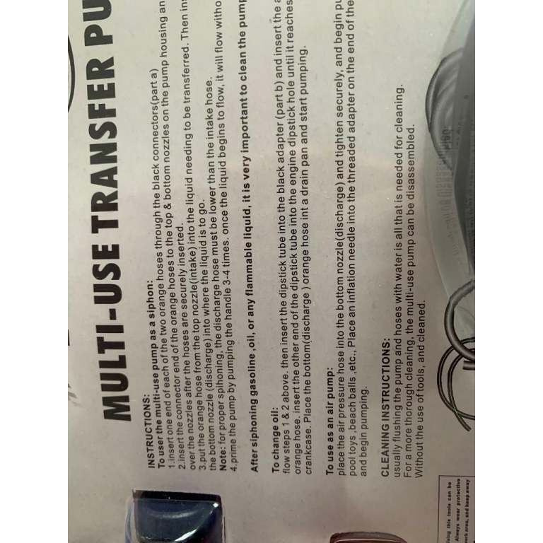 Can be used as a siphoner, oil changer or air pump. Never used and still in original packaging