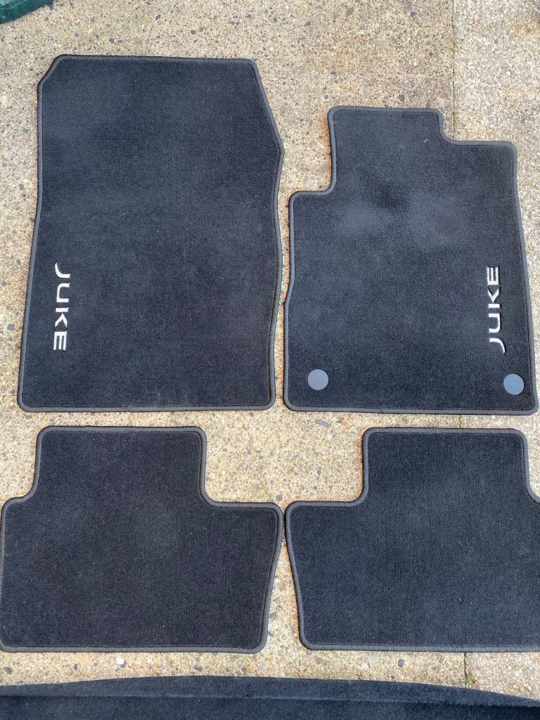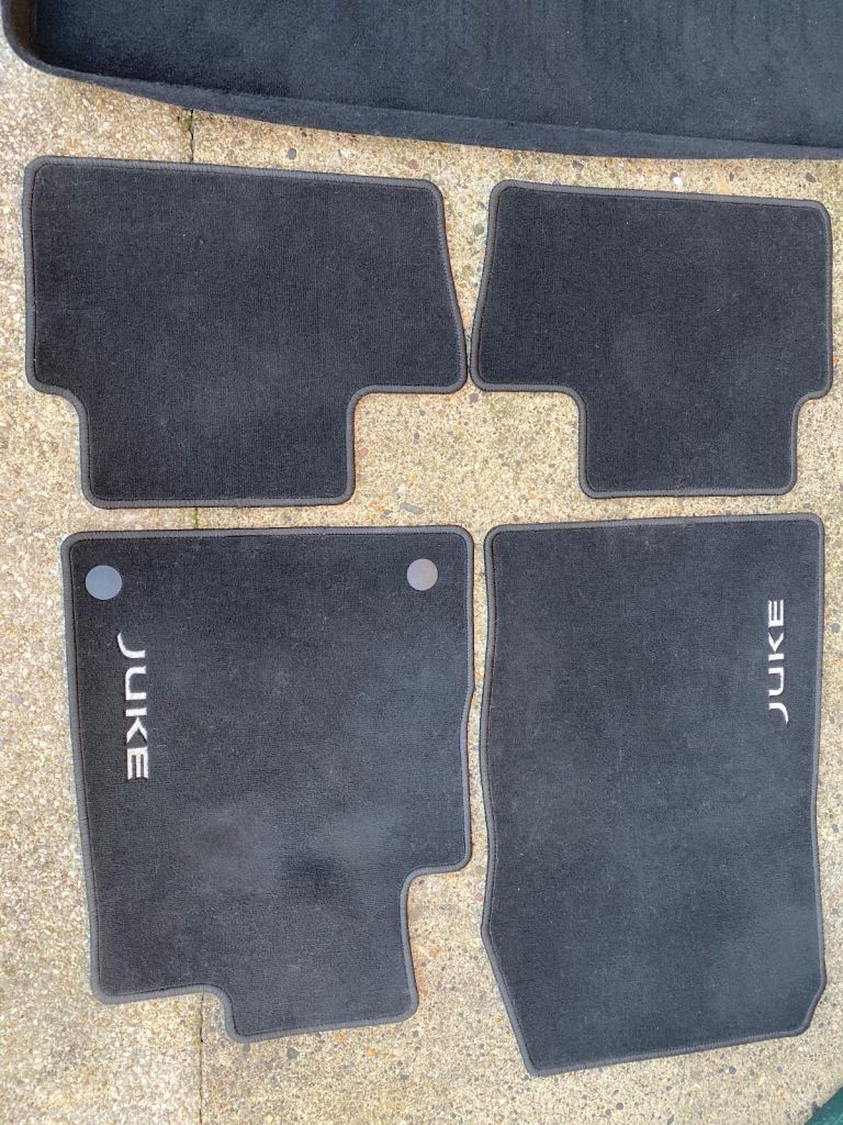 Genuine Nissan front & rear cat mats and boot liner, fits new shape Juke. In excellent used condition.