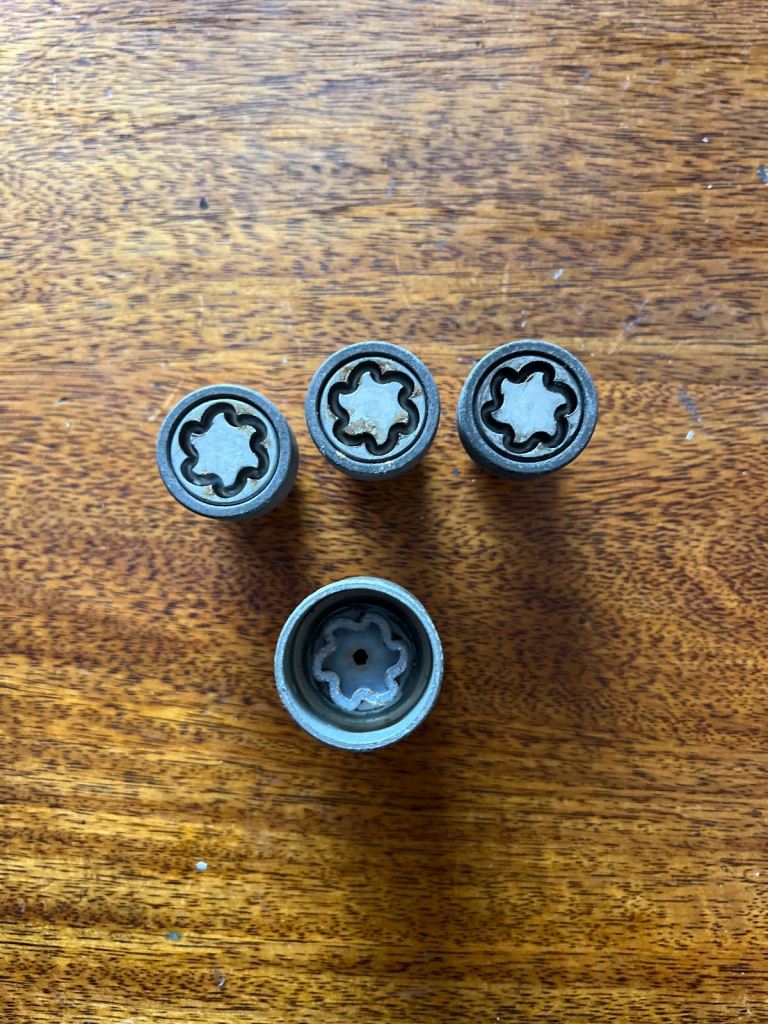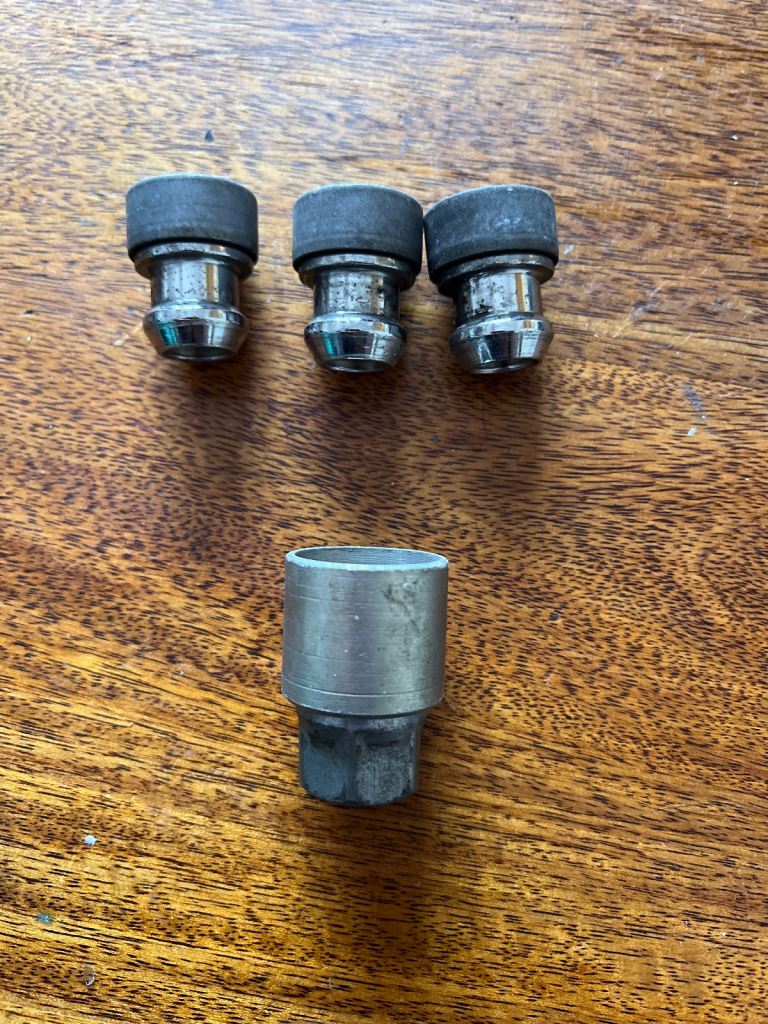 3 lockable wheel nuts and associated key nut.
