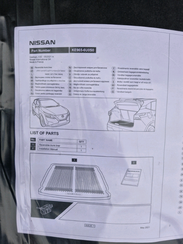Genuine Nissan Qashqai J12 reversible boot liner. Carpet and plastic sides, brand new unopened.