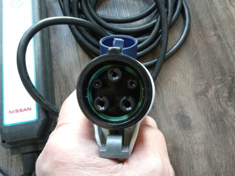 Used genuine Nissan granny charger with type 1 vehicle connector and standard 13A plug.