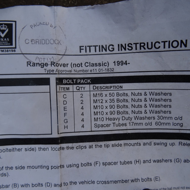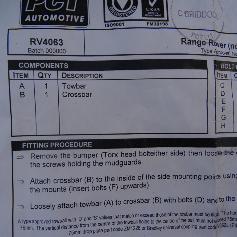 PCT Towbar for Land Rover Range Rover 1994-2002 Flange Tow Bar Kit