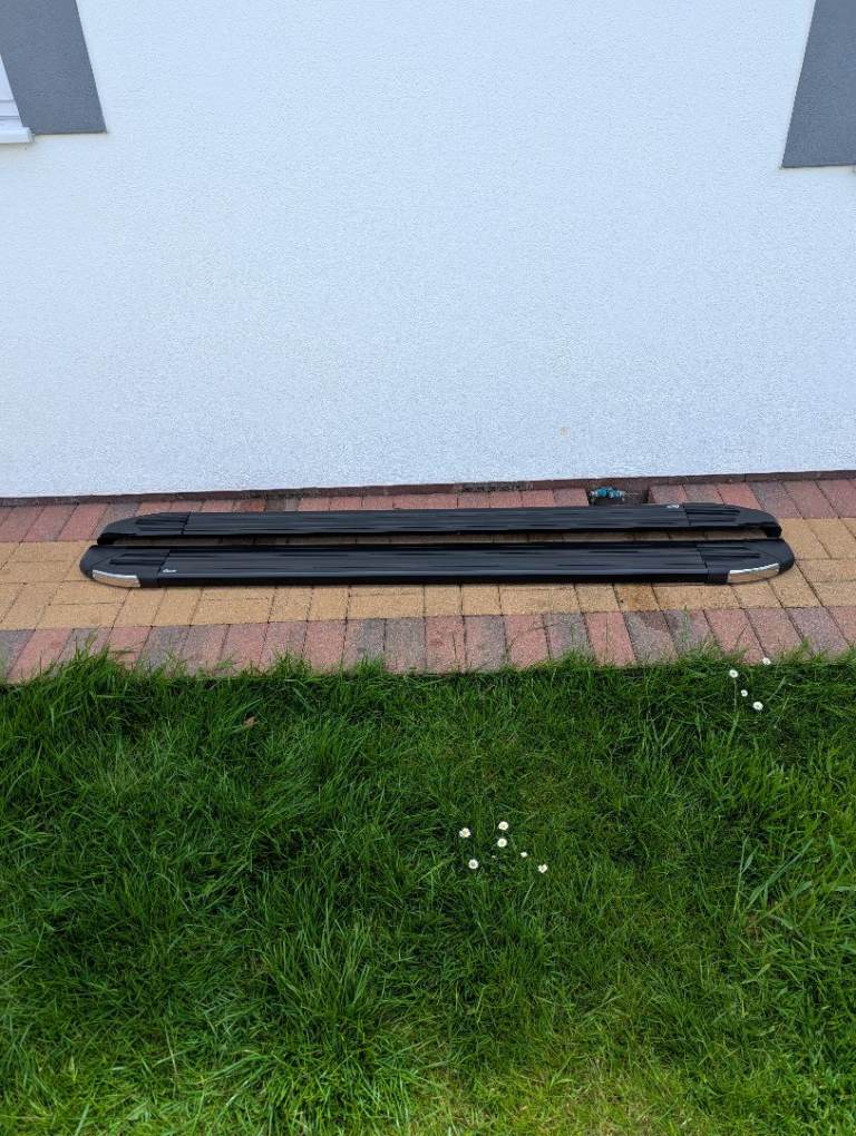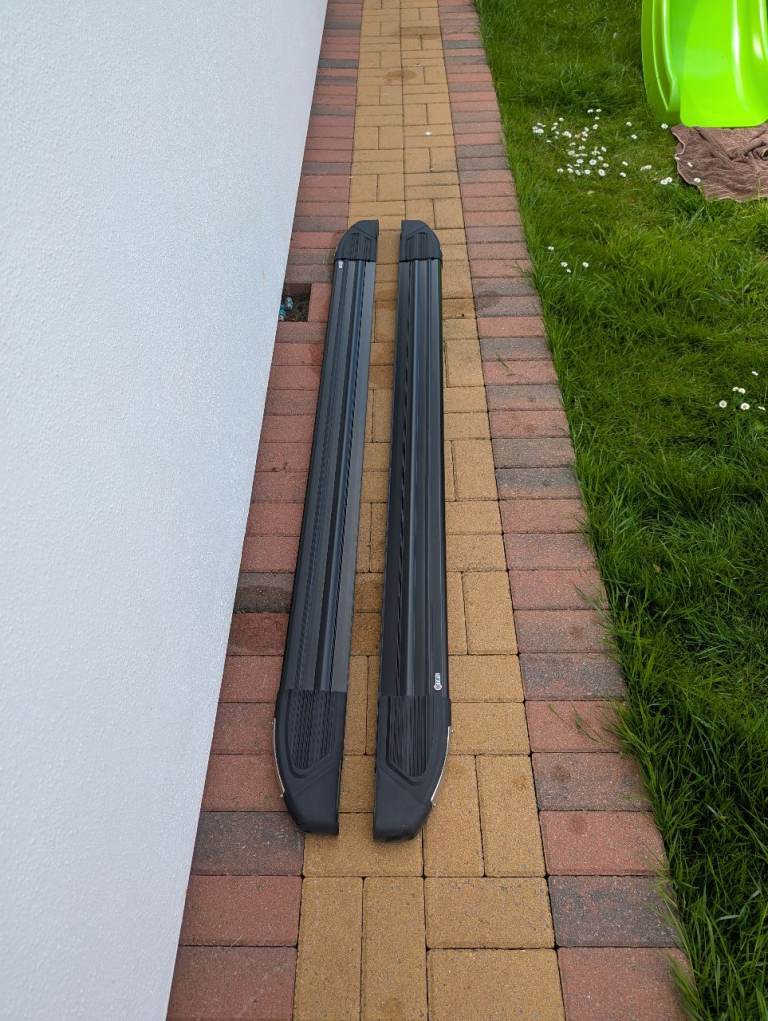 Set of black side steps never been fitted with fixing kit for a Peugeot Rifter