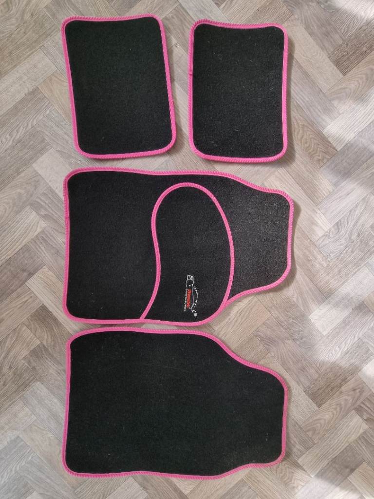 Black car mats with pink trim good condition only mark on them is the trim in 2nd pic