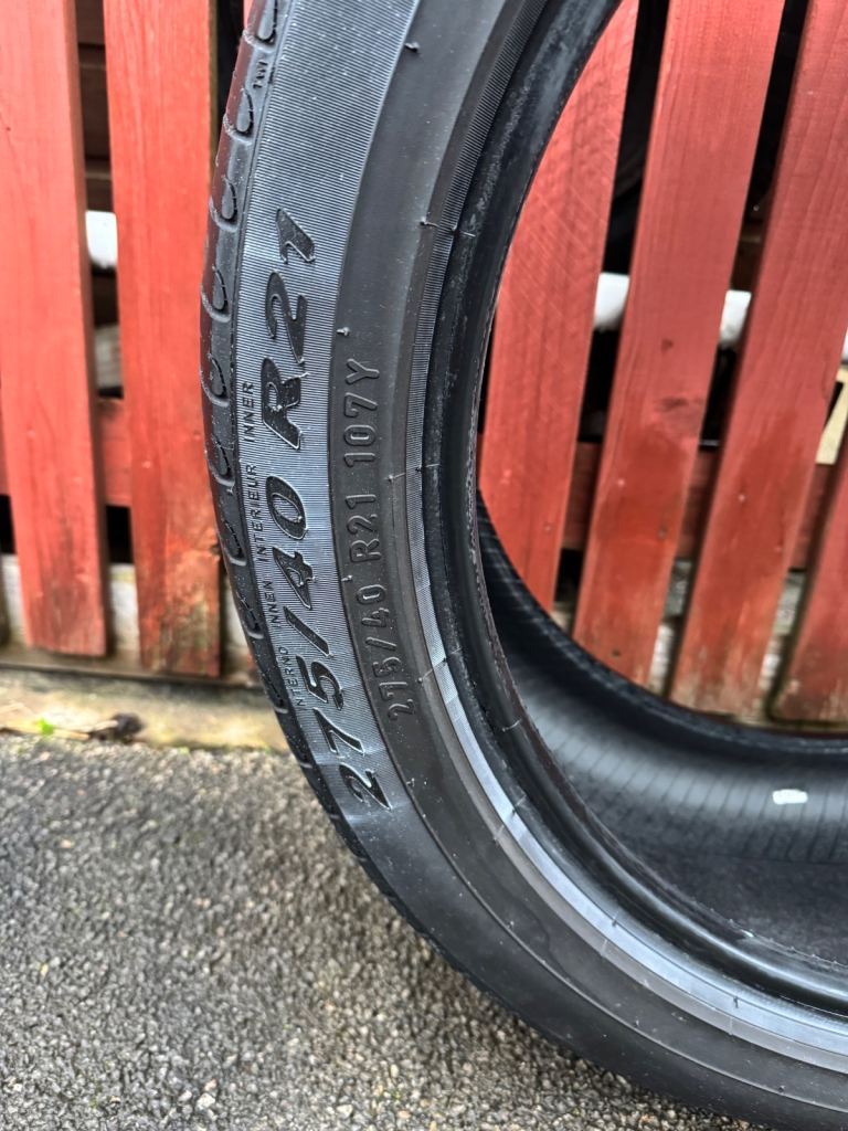 Pirelli tyre scorpion verde 275/40/21 5mm depth in great condition no sidewall damage punctures or flat spots will fit other vehicles of the same size tyre.