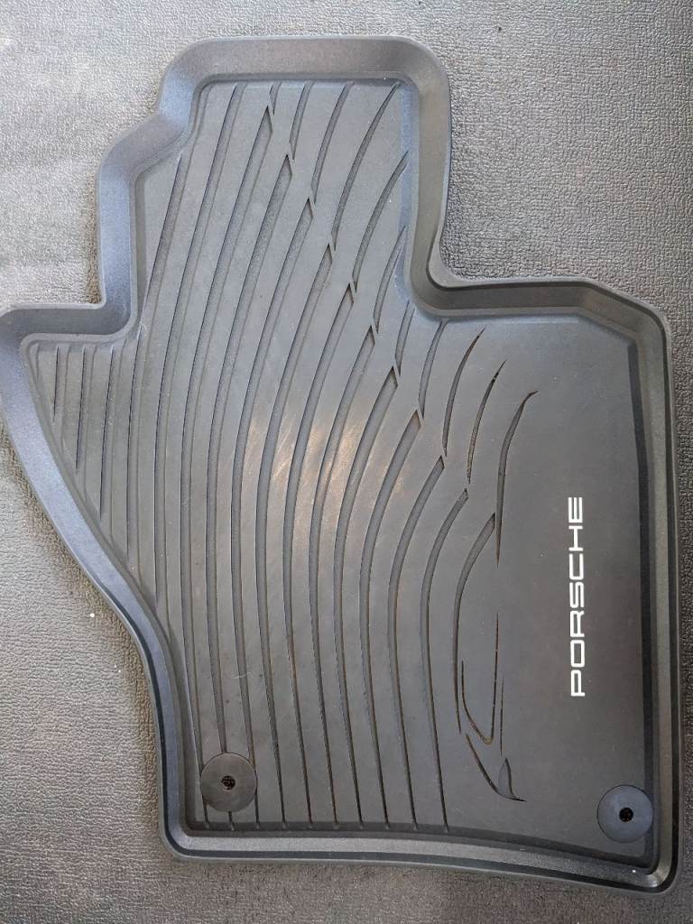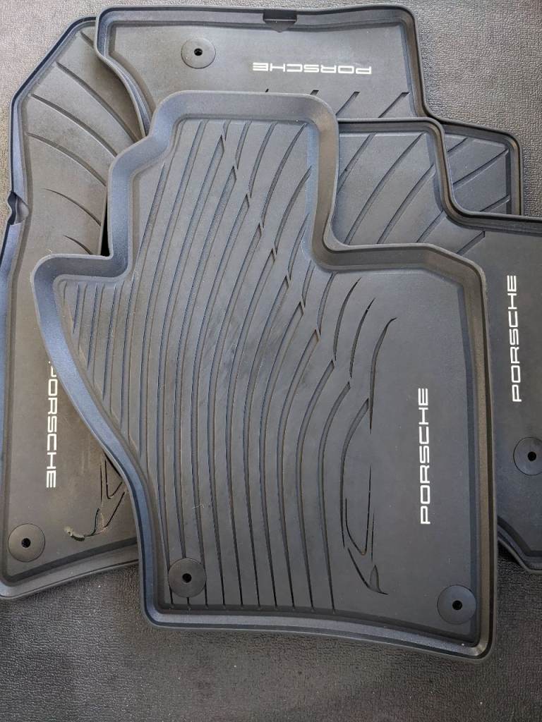 Set of four genuine Porsche Cayenne E2 rubber All-Weather Floor Mats in fantastic condition.