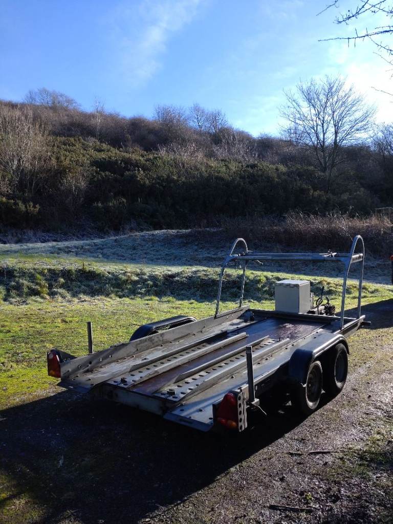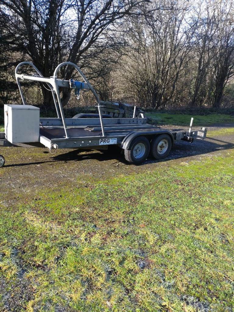PRG mini sport trailer for sale. Twin axle. Fits in standard single garage. Dimensions in images plus bed width = 165 cm. Comes with ramps, 2 new wheels (+spare), 4 new tyres. New Jockey wheel. Manual winch, wheel rack, jerry can box (stores 2 x 20 litre jerry cans). Hitch lock and wheel clamp included. I can throw in a car weather cover and transport net it required. The trailer has been serviced every year I've owned it. Receipts available. I've towed a Caterham on it but I've upgraded to a covered trailer. Excellent trailer for the money.
