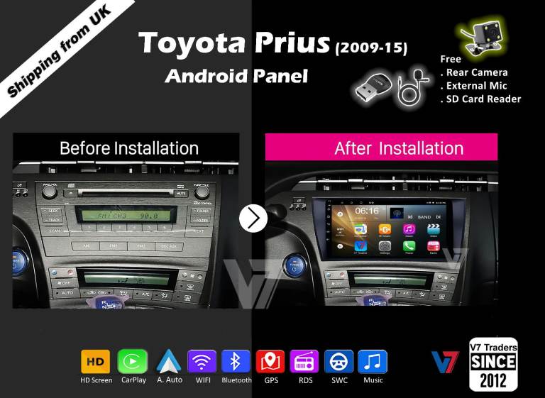 Prius 2009-15 CARPLAY Android Auto HD Screen Head Unit GPS Stereo LCD Panel V7