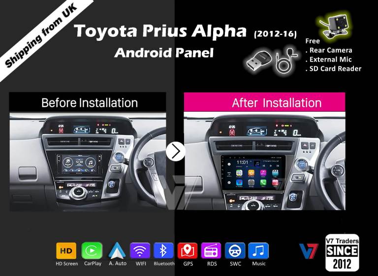 Prius Alpha 2012-16 CARPLAY Android Auto HD Screen Head Unit GPS Stereo LCD Panel V7