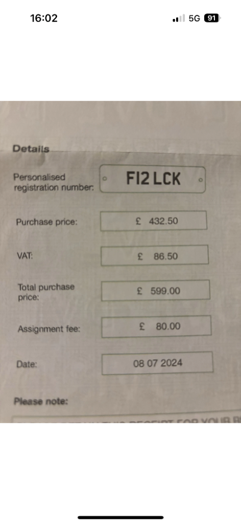 Posting for 16+ yearsPrivate registration plate