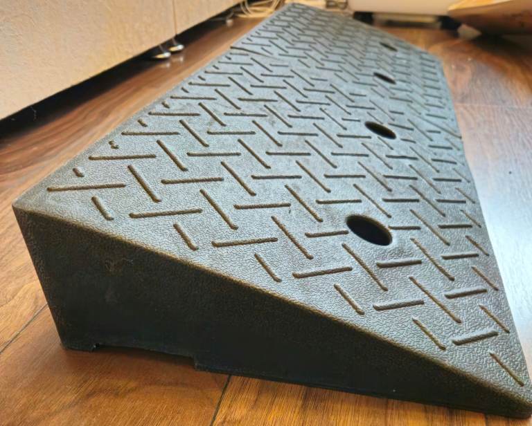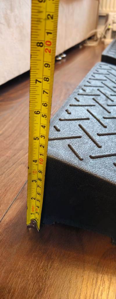 2 set of heavy-duty ramps. Ideal for wheelie bins, prams, wheelchairs, drop curbs, and much more. Can raise to 10cm high.