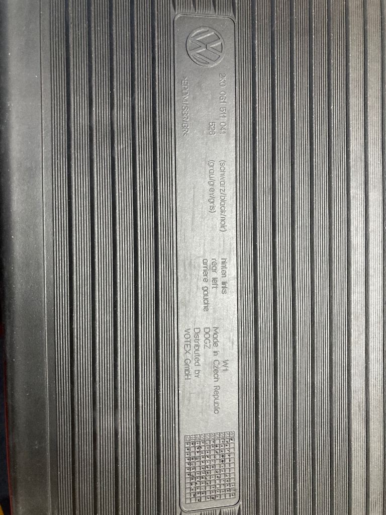 These are VW high quality rubber floor mats to fit our previous Caddy Maxi Life (2015-2021 model). The latest model of the Caddy is a slightly different shape, so I had to buy new mats at £42. But the quality of these earlier mats is much better, being made from thicker rubber.