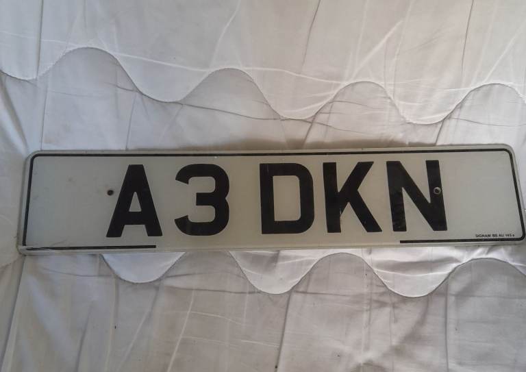 Selling private registration number plate A3 DKN. Retention documents and two number plates available. Maybe a gift for someone. Will consider offers.