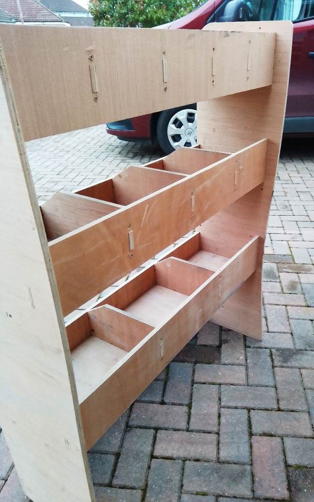 Toolbox shelves L 1000mm x W 320mm x H 1170mm and unit with storage compartments L940mm x W 320mm x H 1170mm. Total length when inserted L 1940mm – designed to fit SWB.
