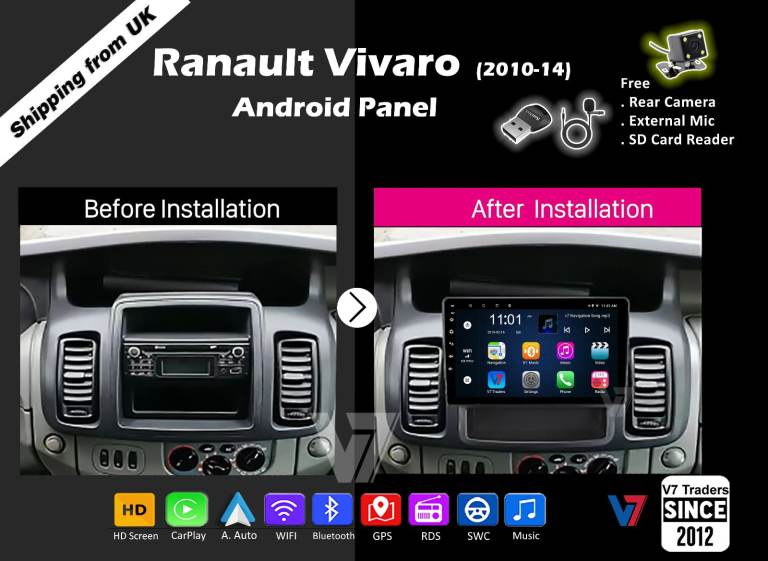Renault Vivaro 2010-14 CARPLAY Android Auto HD Screen Head Unit GPS Stereo LCD Panel V7