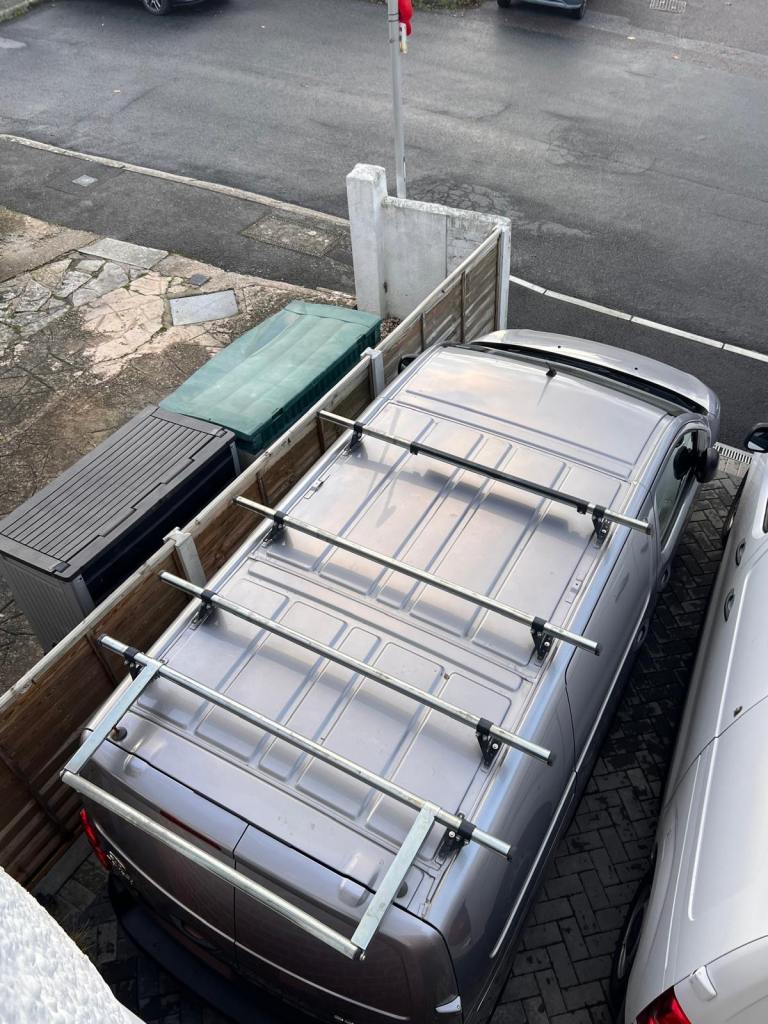 Rhino roof bar with back roller. Fits Vauxhall Vivaro but adapted to fit Toyota Proace.