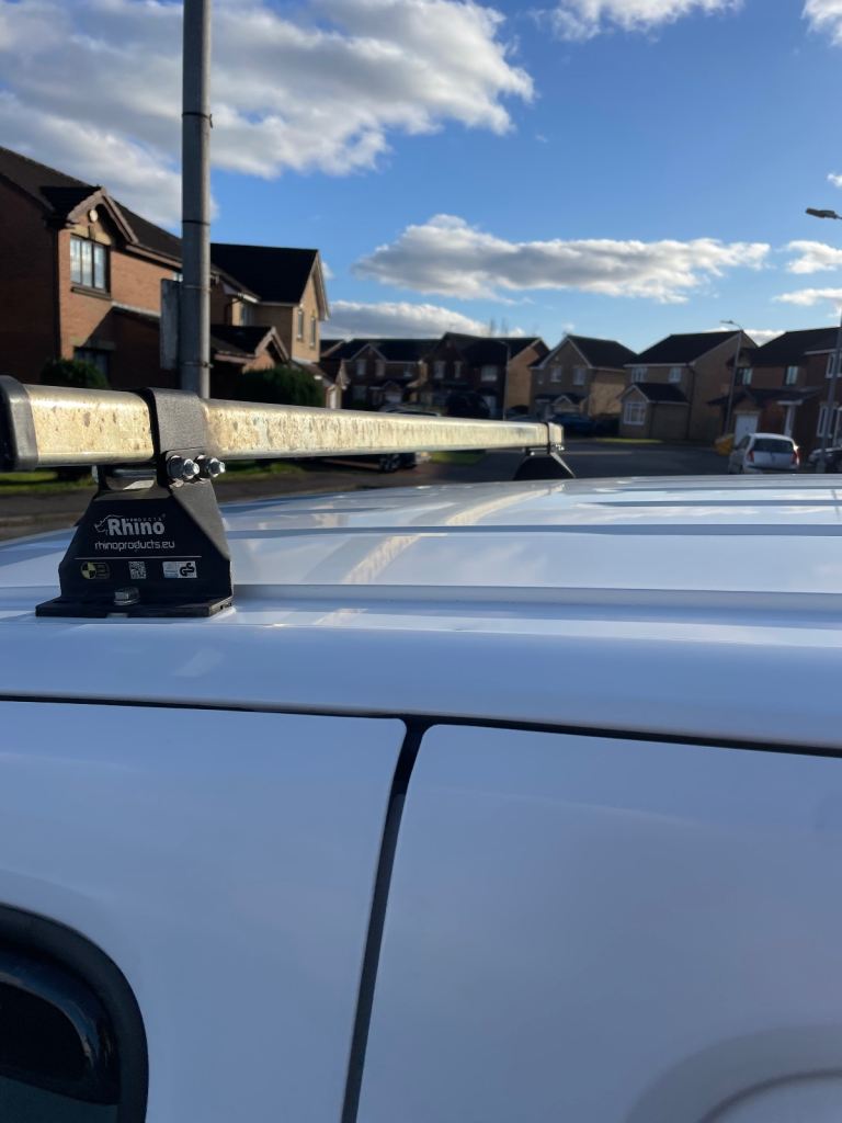 Pair of Rhino Roof Bars, fixtures and fittings included. Currently on a Vauxhall Combo