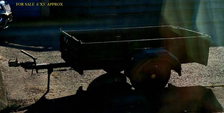 wooden sided trailer with drop down rear door 6ft x 3ft approximately, good tyres, still available but Gumtree wont let me reply to enquiries so my email is fifearab @msn