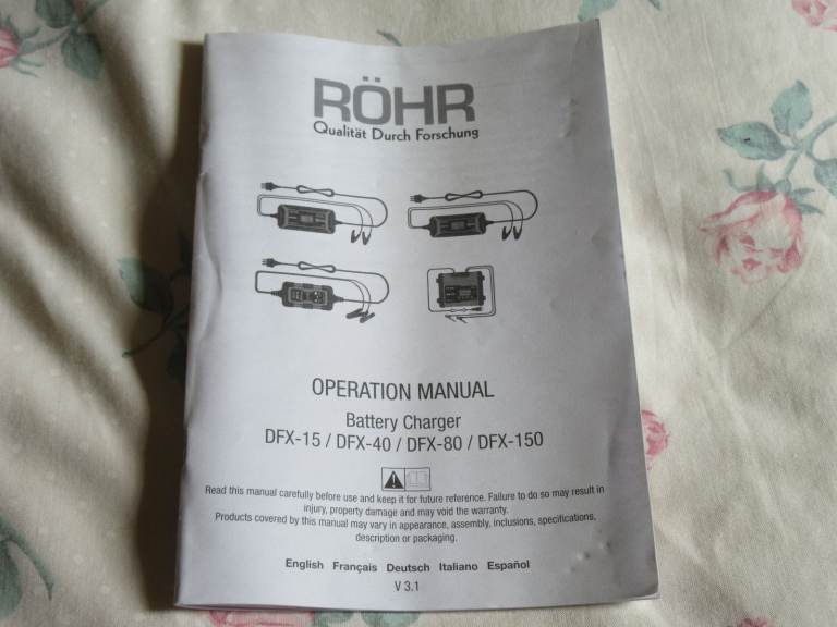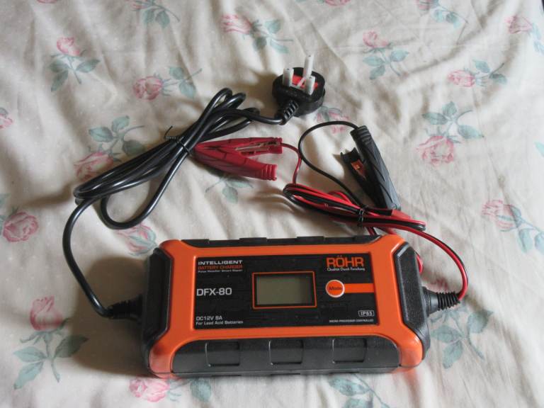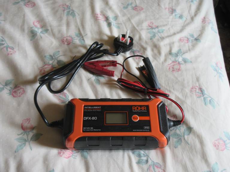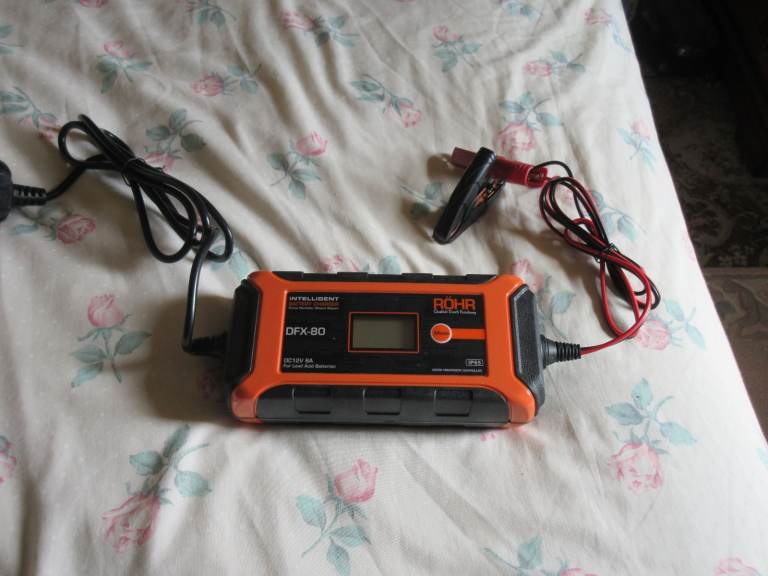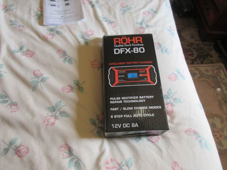 Grab a bargain with this unused Rohr Car Battery Charger (For Lead Acid Type Batteries) DFX-80 Model. Operates on a mains plug. This item has not been used at all,therefore surplus to my requirements.Great saving on new prices.Postage cost to be added to the price of the charger., this being roughly £8.00.