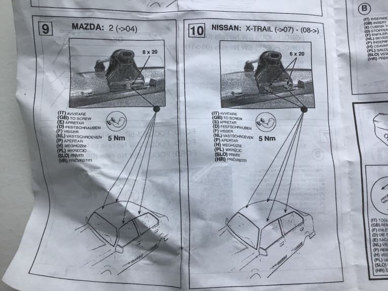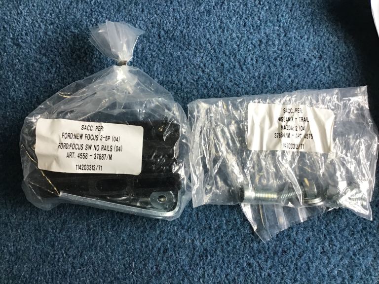 Roof bars in excellent condition. Fits Mazda 2. Ford Focus. Nissan x-trail. See enclosed photos for exact models. Used twice. Full fitting kit included. A bargain at this price.