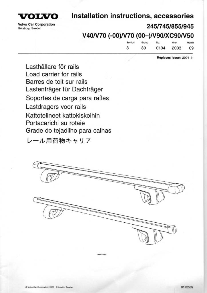 Pair of Roof Bars to fit Volvo V50 with open roof rails.