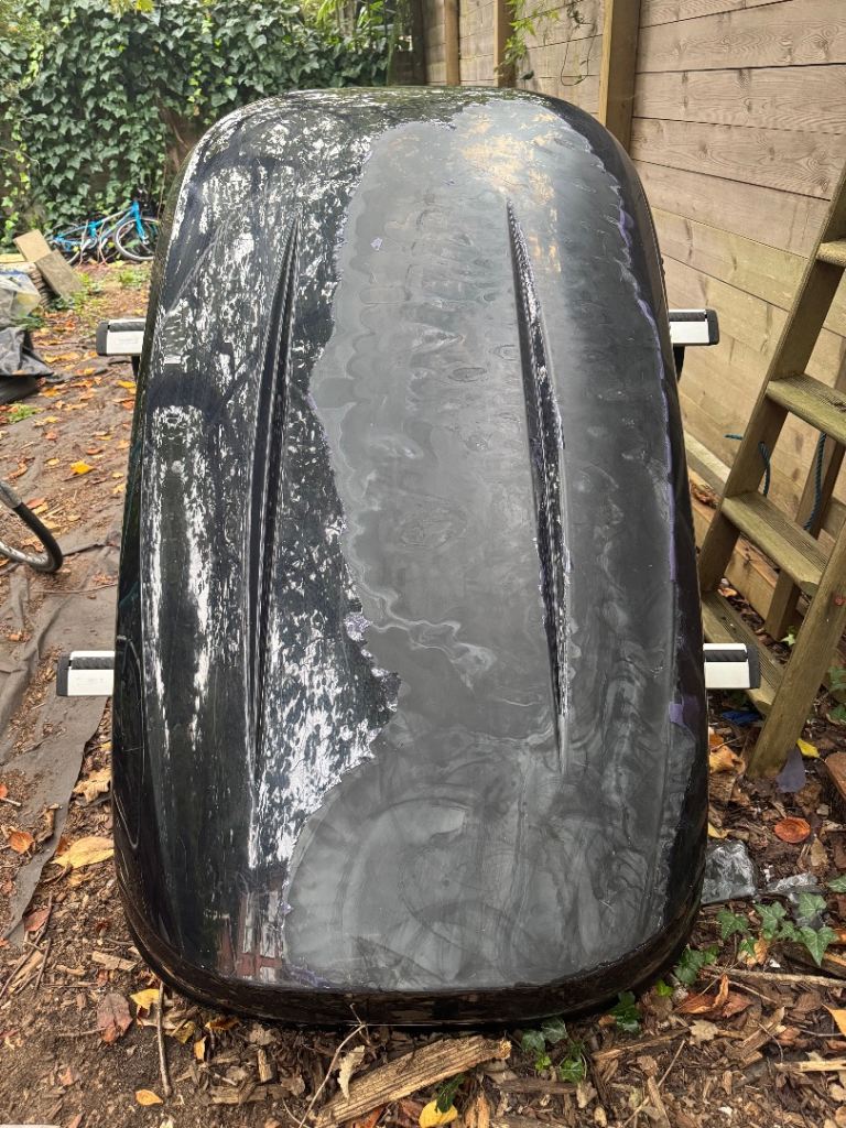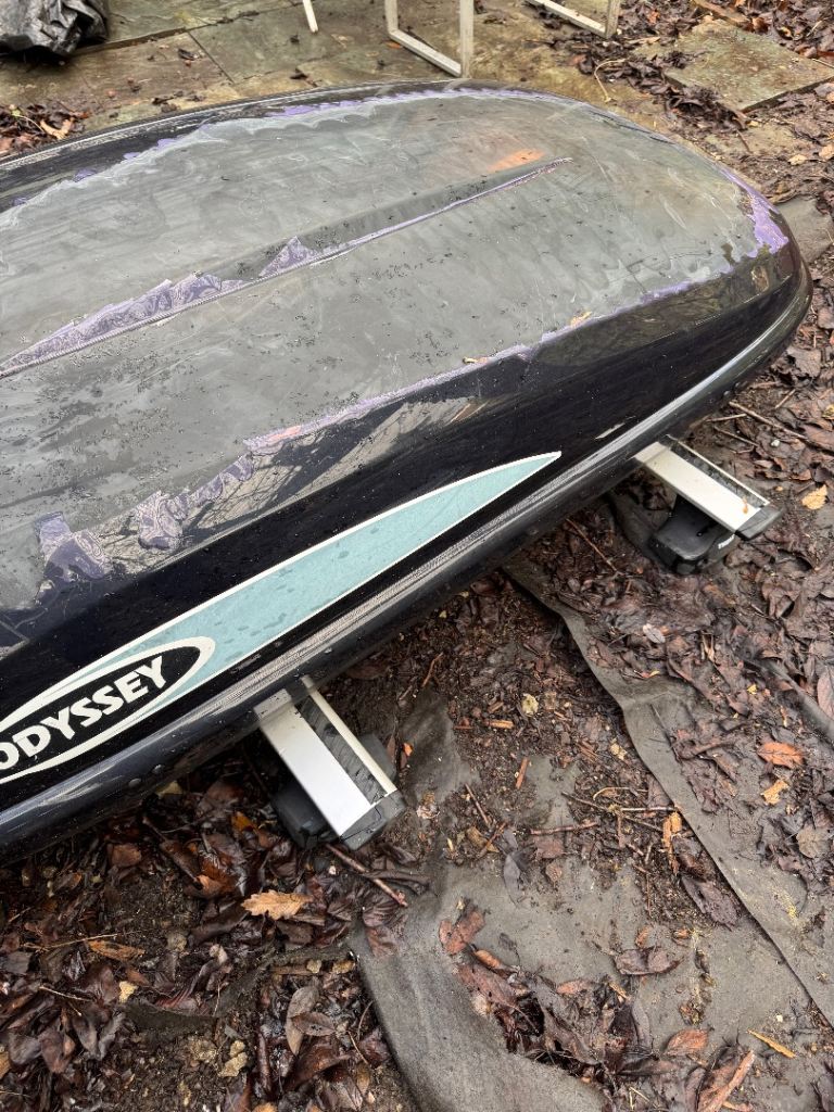 2. Odyssey Karrite roof box has some cosmetic damage to the UV protection film due to it being stored outside. This means that the box is slightly faded in colour - see photos - but doesn't affect anything else. It works very well and is completely water tight. Available for FREE.