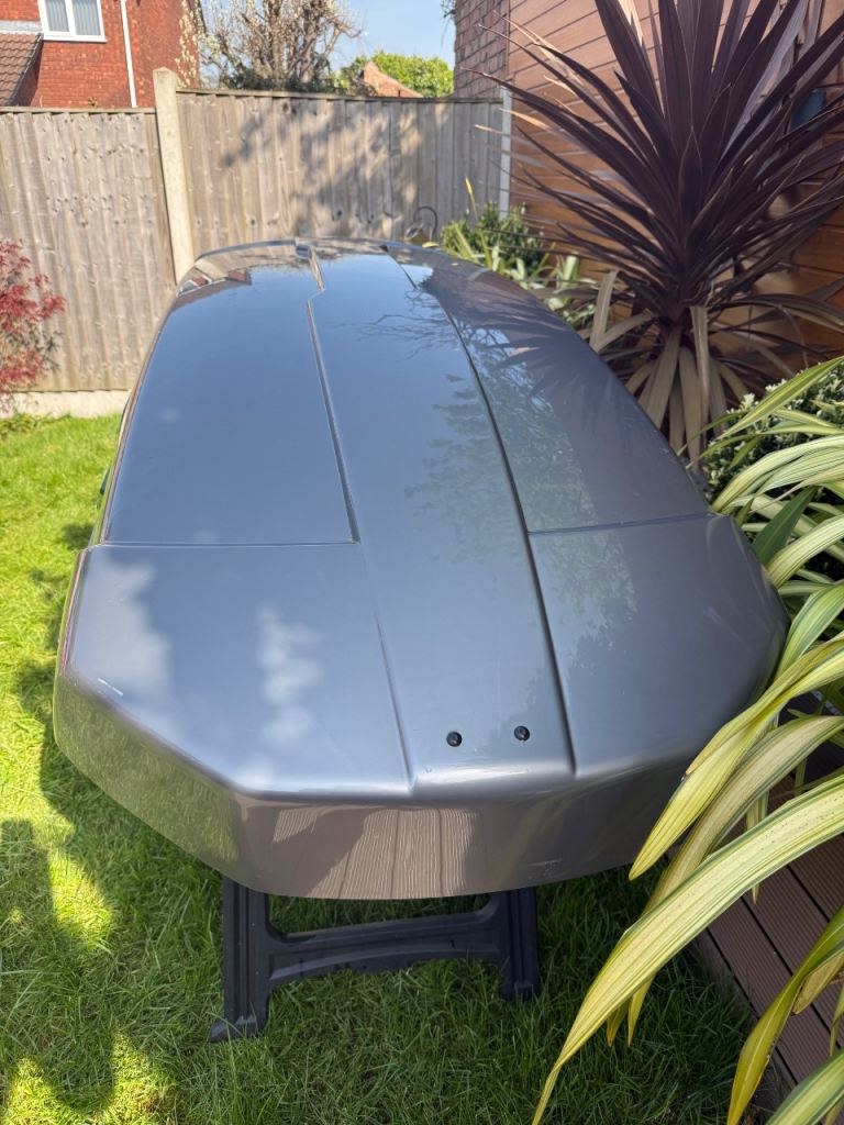 It is finished in a high titan glossy colour. It is one of the most stylish, practical and secure roof boxes you can buy. The superb Power click mount system together with dual side opening makes mounting a breeze.