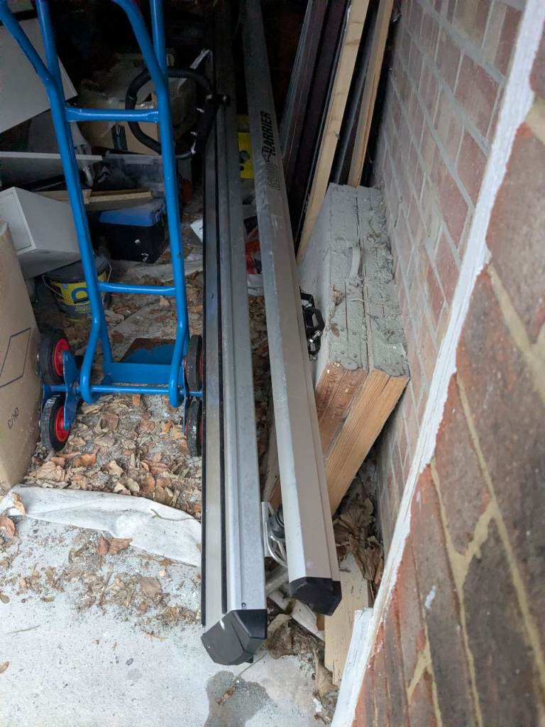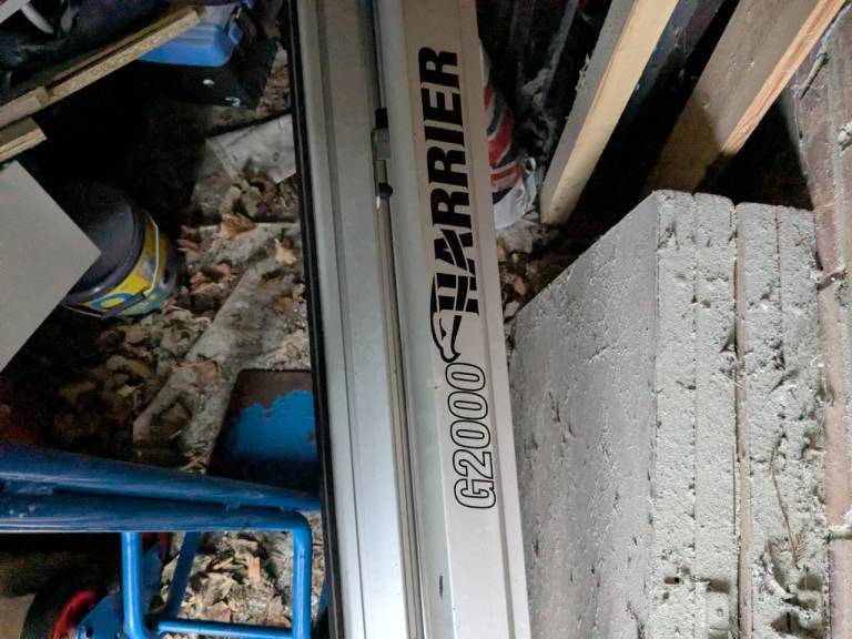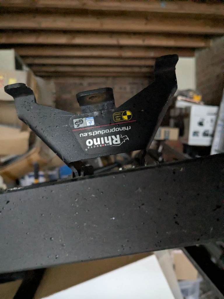 Rhino roof rack 6 crossbars+ full width aluminum rear roller and G2000 Harrier sliding ladder rack holder, used but in very good condition. The roof rack has been take apart, for transport reason and can been assembled if required.