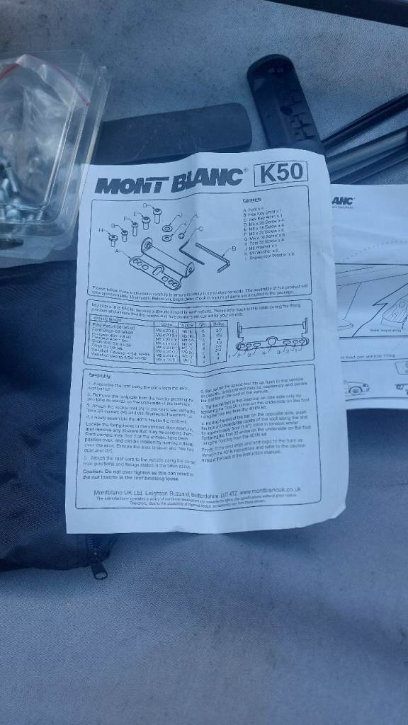 MontBlanc roof bars co.plete with K50 Fitting Kit.