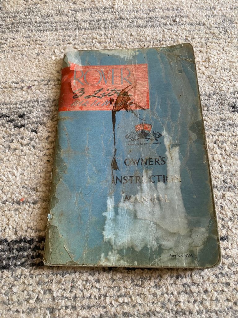Rover mk1 3 litre user manual Published 1961 so 64 years old. Not great condition in front cover but rest of manual good