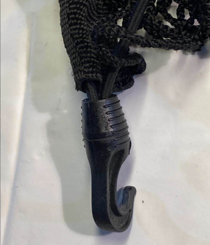 Unused Saab 95 Cargo Net suitable for Saab 95 cars prior to 2009 with 4 heavy duty platic securing hooks, black colour.