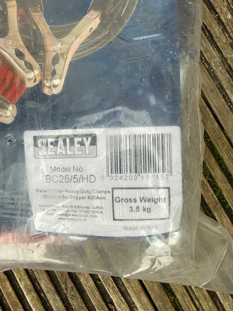 The Sealey BC25/5/HD Booster Cables 5mtr 600Amp 25mm² Heavy Duty Clamps has been successfully sold in the UK for the last 30 years, used by both professionals & DIY users.