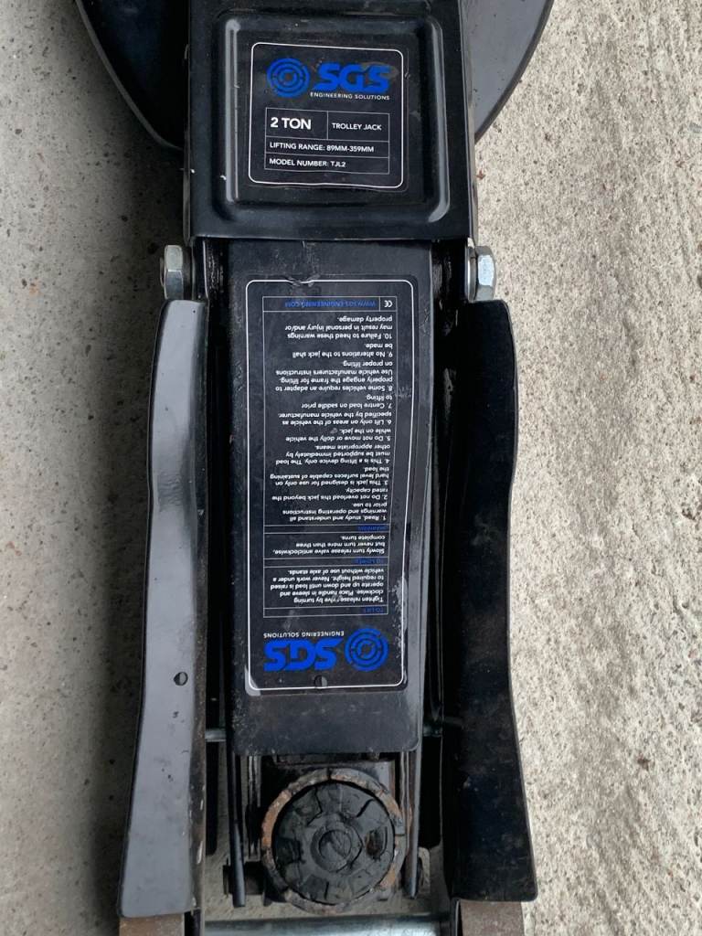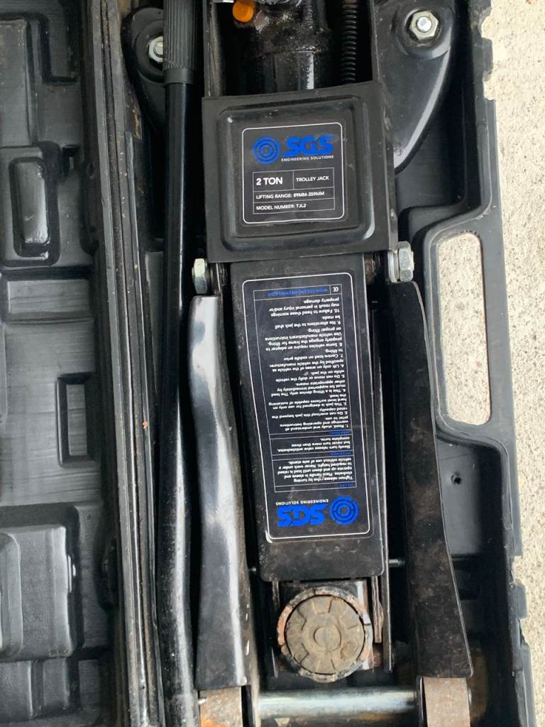 A low profile 2 ton hydraulic trolley jack by SGS which was bought for use with a classic Xk120 Jaguar with very low ground clearance. Had very little use and is now surplus to requirements. Fits under low ground clearance sports cars and much safer than either a scissors or bottle jack
