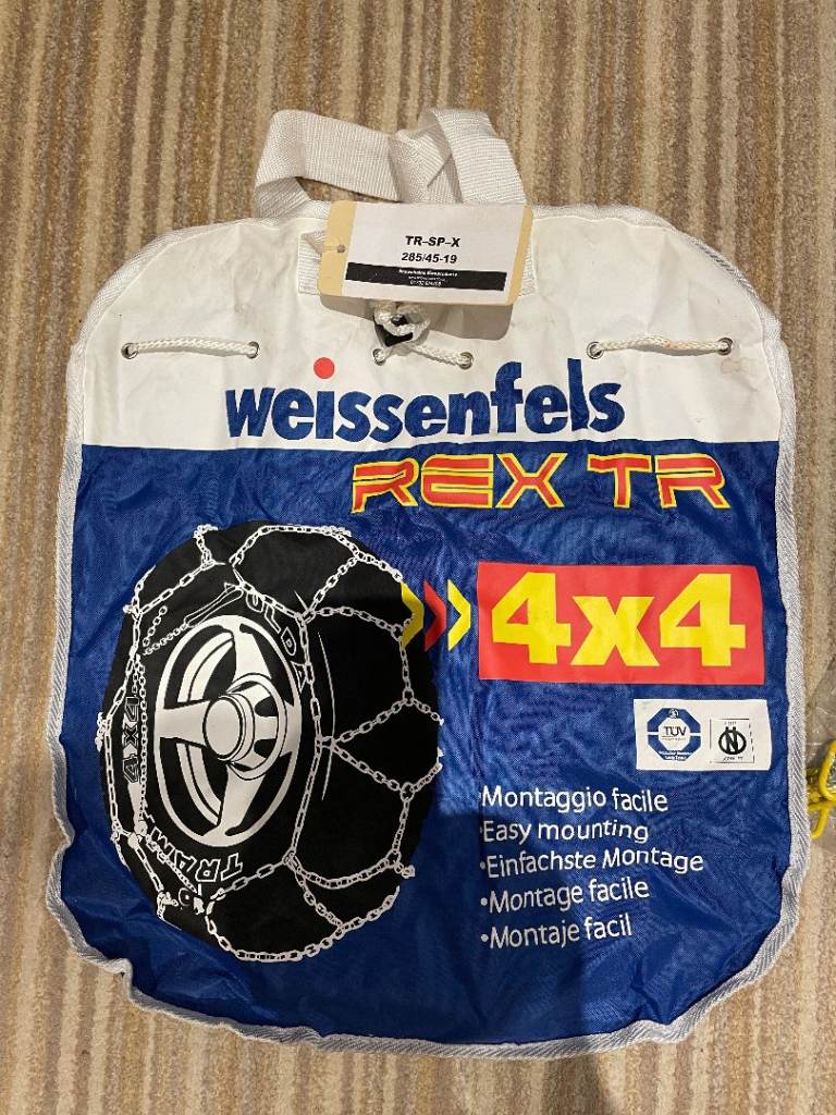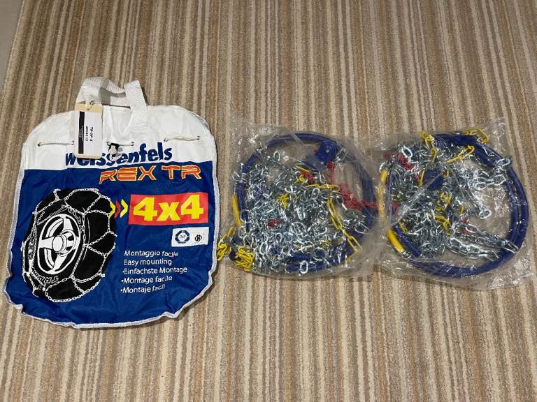 Weissenfels RXTR Snow Chains. Fitted once to practice (just incase) but never used so condition is as new. Cost new over £200