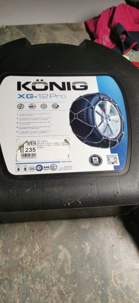 These snow chains have been used just 2 or 3 times but we have now sold the van. They fit the alloy wheels on a Renault Trafic Sport, which needs to thinner gauge chains.