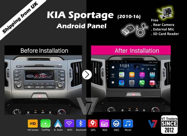 Sportage 2010-16 CARPLAY Android Auto HD Screen Head Unit GPS Stereo LCD Panel V7