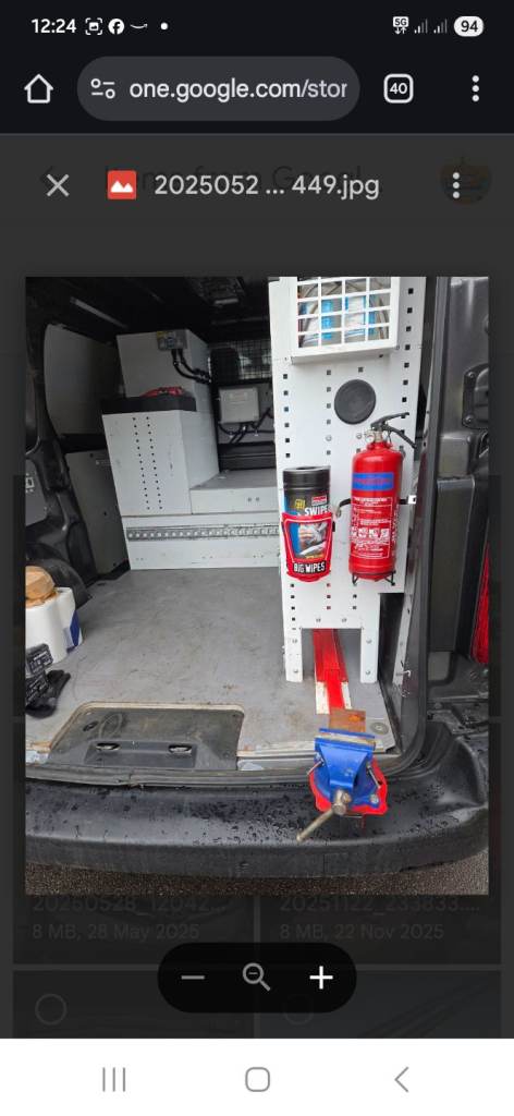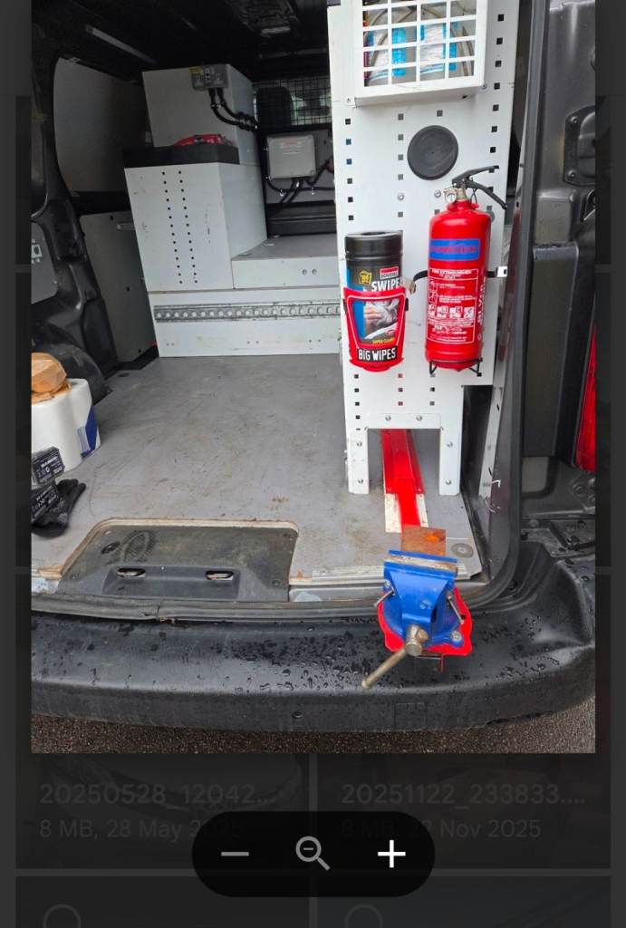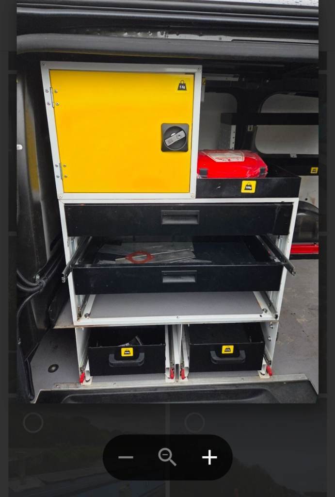Quality Van workshop shelving/racking, pull out workbench & vice. Ideal for home workshop or your van refit.