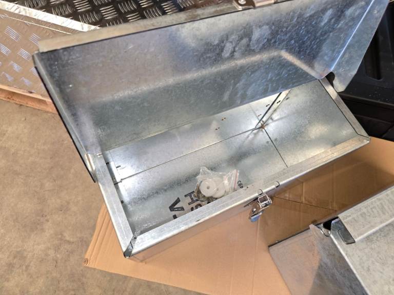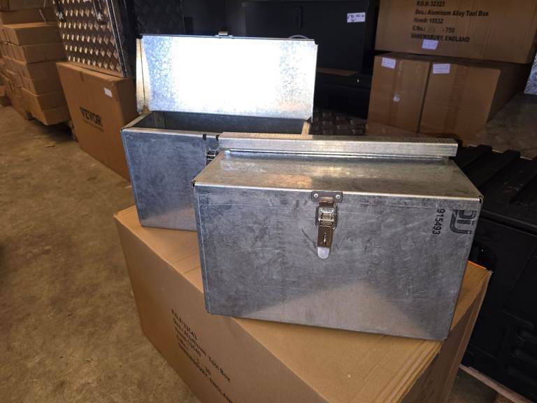New style of galvanised toolboxes just in, these are perfect for plant trailers on the drawbar for chains straps etc. £115 all in.