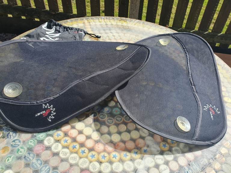 These sun shades are in very good condition, no rips or marks. They fold up into a storage bag. Collection only from Weston Mill