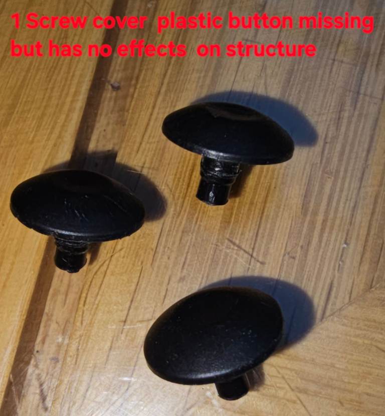 1 Screw Cover Black Plastic Button Missing But does not affect the structure