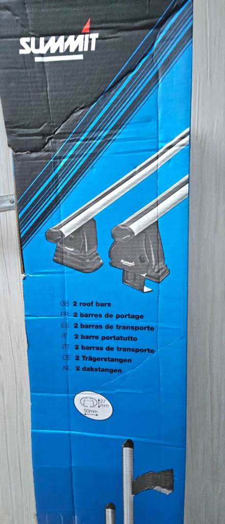 Brand Summit Manufacturer Part Number SUP-A009005-A Includes Complete Pair of Bars Includes all attachments Colour Silver Features TUV & GS standards Aero to reduce noise complete set with feet Material Aluminium Max Carry Weight 75kg Security Optional Locks Available (not included) Subtype Cross Bars Type Cross Bar MPN SUP-A009005-A Max Load 75kg Suitable for Carrying Cycle Carrier Roof Box Ladders Attachment Type Fix Point