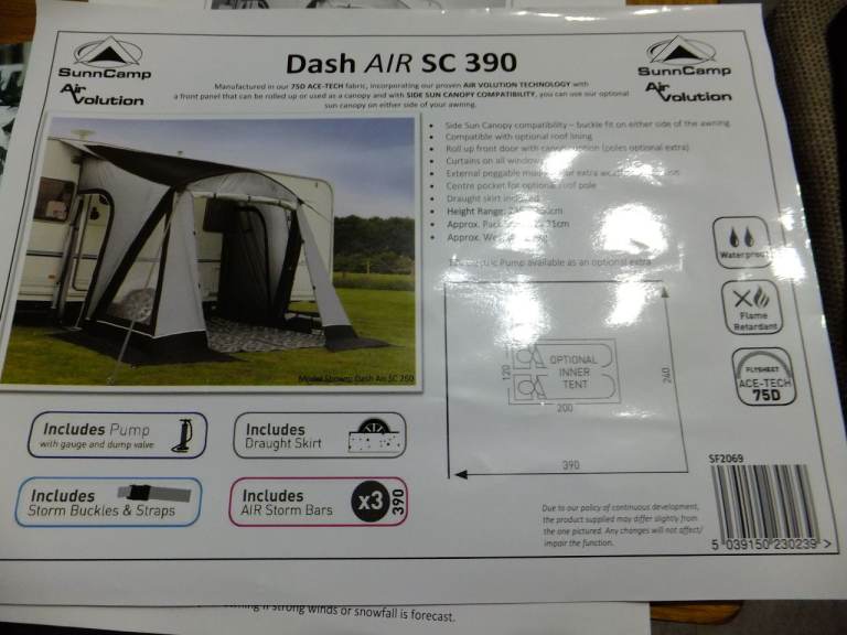 SunnCamp Air Volution Dash Air SC390 bought late 2024 only used 3/4 times In very good condition