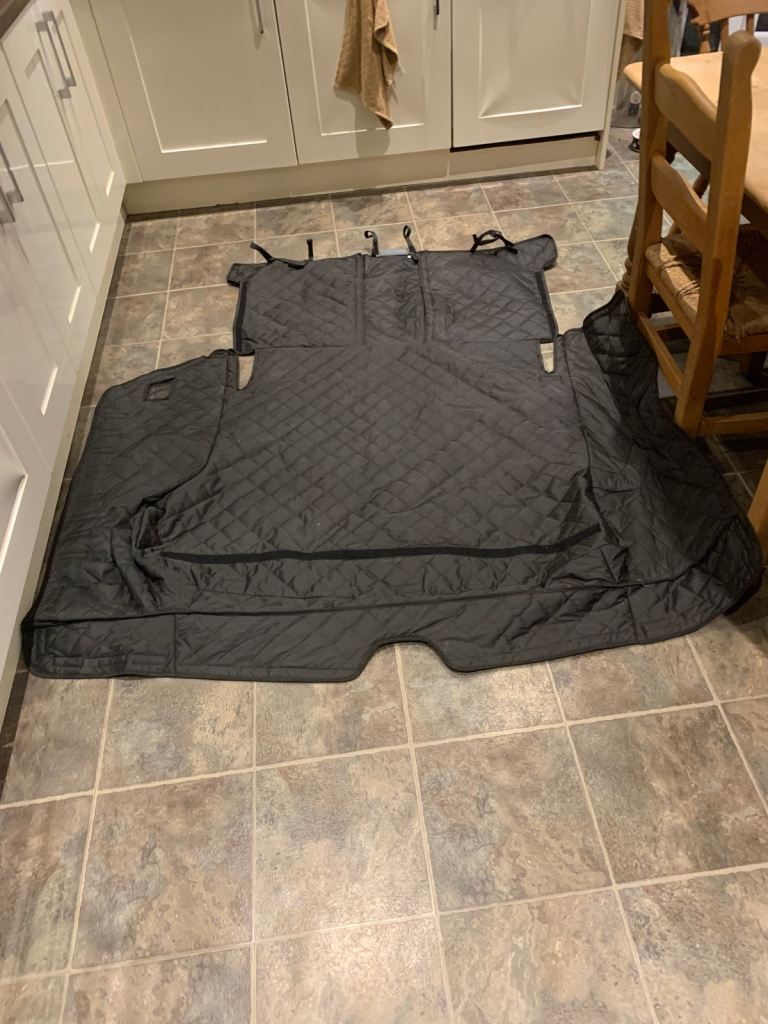 From a 2017 Range Rover Velar but will fit many SUV full boot quilted liner.