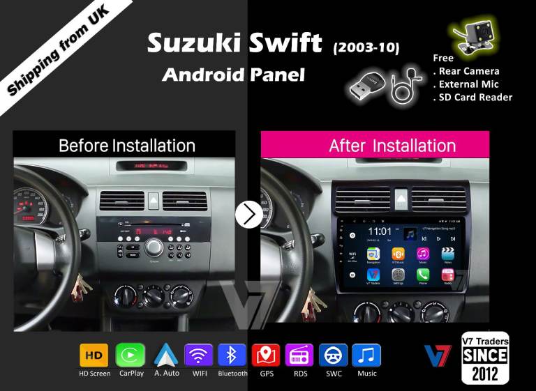 Suzuki Swift 2003-10 CARPLAY Android Auto HD Screen Head Unit GPS Stereo LCD Panel V7